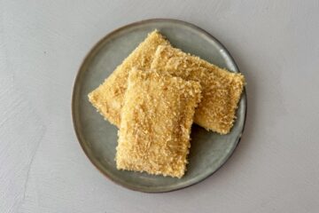 Deze kaassoufflé is een volledig zelfgemaakt gerecht met bladerdeeg, vulling en paneerlaag op basis van zuurdesem. De romige kaasvulling is stevig en smelt perfect tijdens het frituren. Met desem panko ontstaat een knapperige, smaakvolle korst. Ideaal als luxe snack, borrelhap of bijzondere lunch.