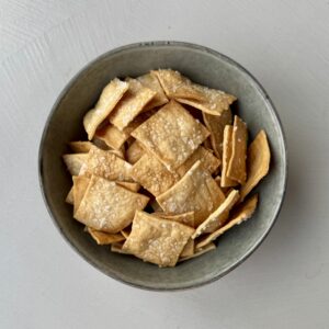 Het belangrijkste uitgangspunt bij dit deeg is zo min mogelijk kneden. Zodra alles gemengd is en het deeg glad oogt, stop je. Meer kneden betekent meer gluten en dat wil je bij crackers juist vermijden. Rustmomenten zijn hier geen luxe maar een hulpmiddel. Even koelen ontspant het deeg en voorkomt dat het steeds terug wil krimpen tijdens het uitrollen.